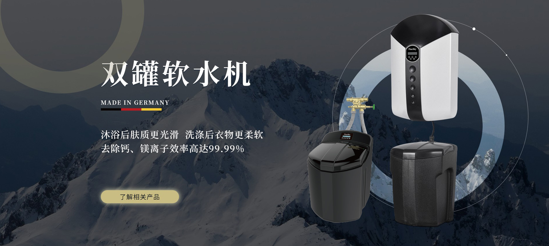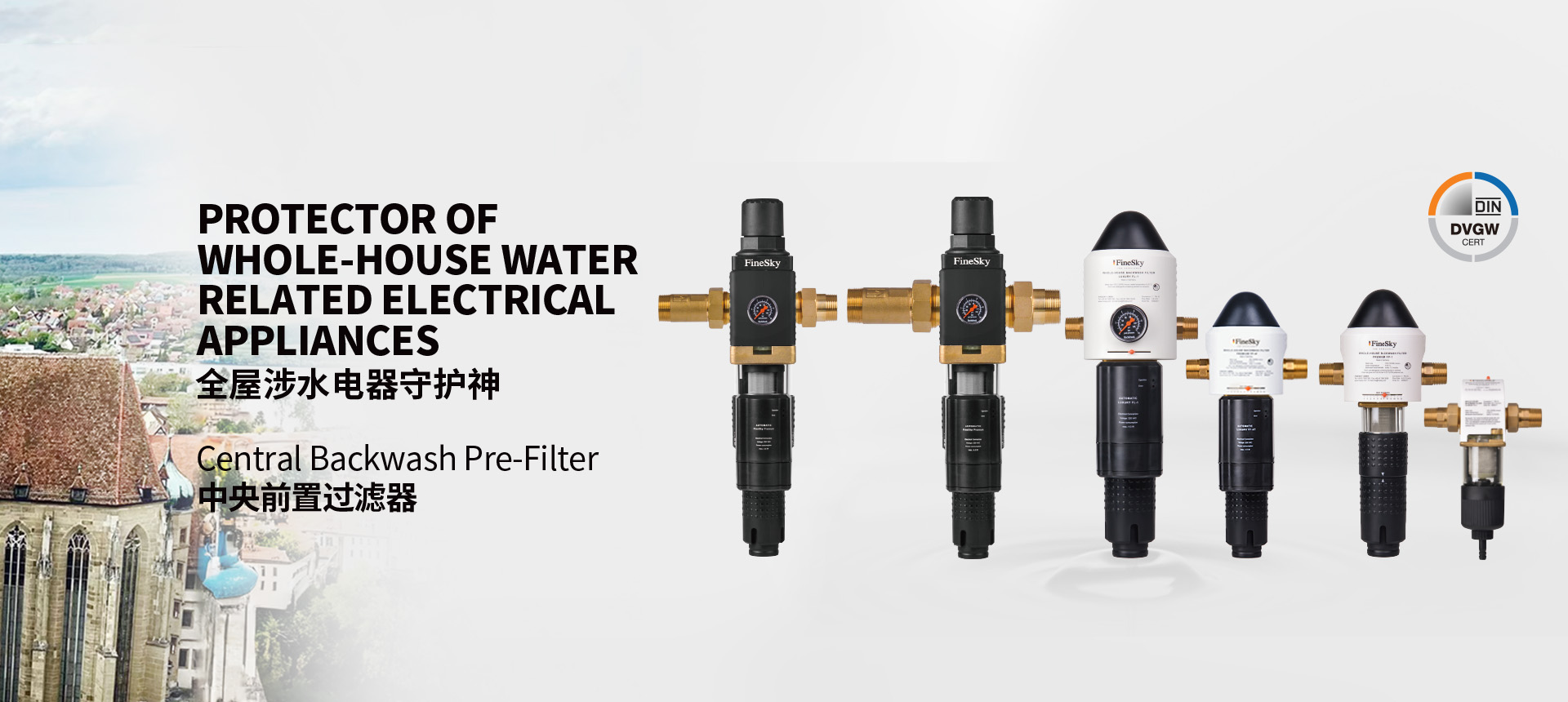FineSky GmbH is one of the most professional water treatment companies who provides water treatment solutions with superior quality to household, commercial and industrial users all over the world. FineSky has been persisting in its exquisite craftsmanship and pursuing innovative water ?ltration technology which makes FineSky the world leading water treatment company. The product line includes backwash ?lter, water softener water puri?er, POU water ?lters, water puri?cation dispenser etc.