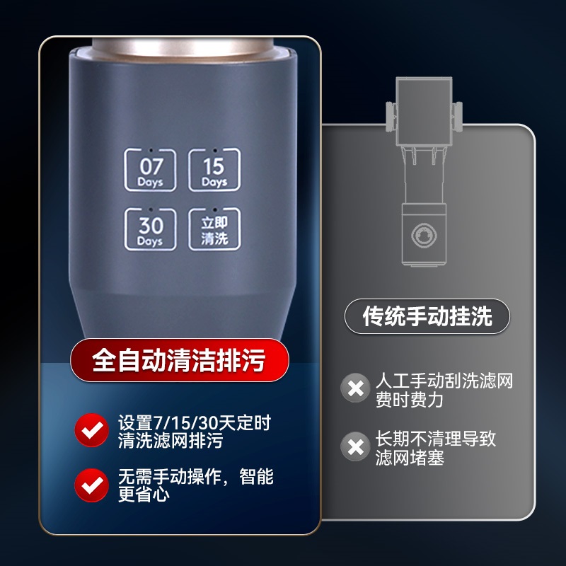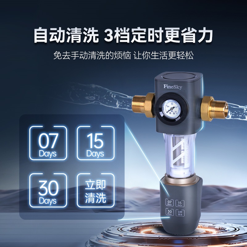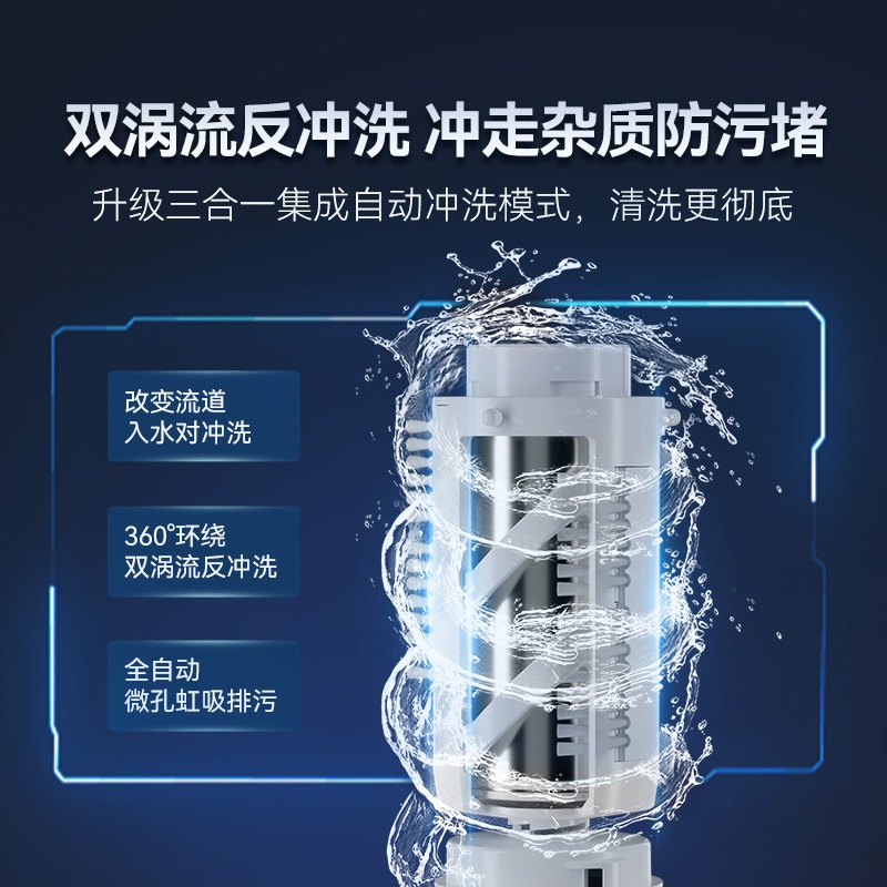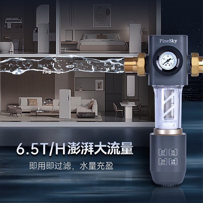 龍卷式深層清潔 反沖洗+雙面毛刷 40μm精密過(guò)濾 可視水壓表盤 316不銹鋼濾網(wǎng)終生免換,免拆洗 高分子航空級(jí)高韌性防爆濾瓶 6.5T/H澎湃大流量 H62+低鉛環(huán)保銅